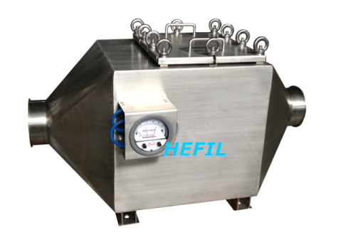 箱体采用全不锈钢结构,制造材料可采用304和316L,快开式高密封度检修门。根据客户不同的要求,过滤箱体内可配以下类型过滤器,主要以国际通行尺寸(24”×24”即610×610)过滤器,并以此尺寸为模数,将过滤器按2×2,2×3,3×2等矩阵排列;内置快速装卸型模块式安装框或滑槽式安装槽,适合不同场合的需求。过滤器详细规格技术参数见各过滤器产品说明。